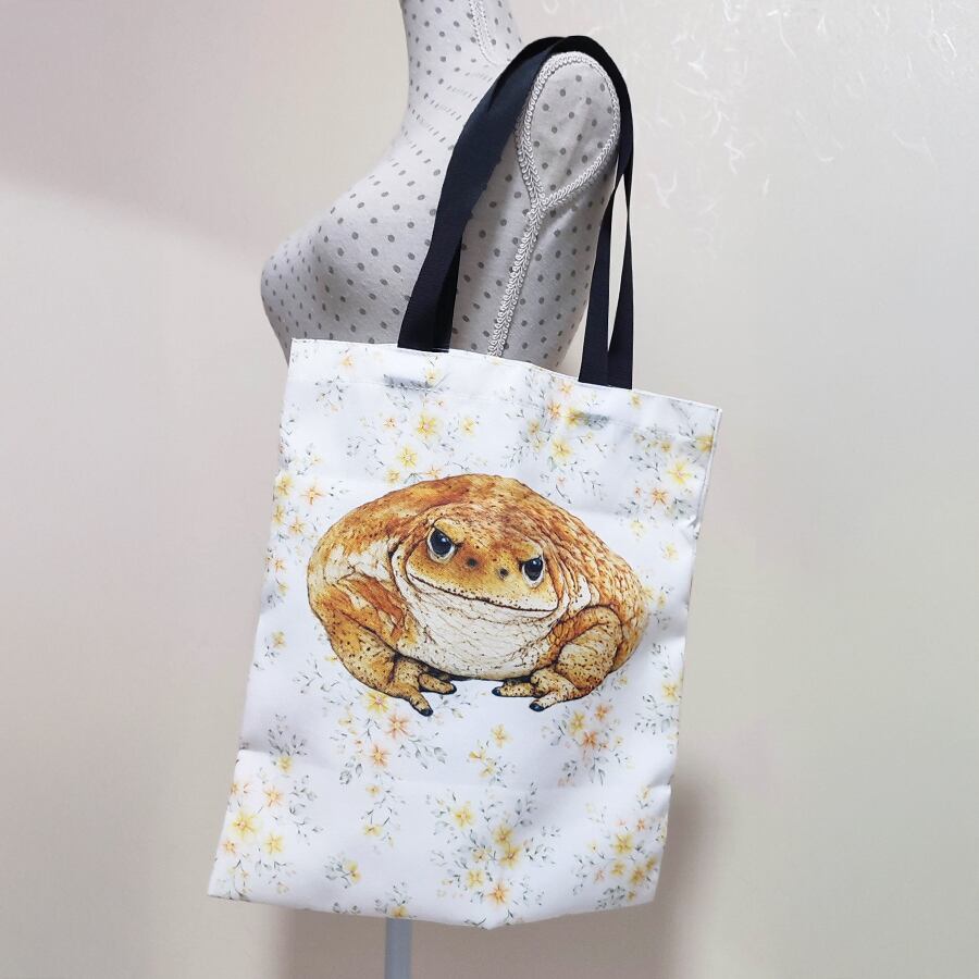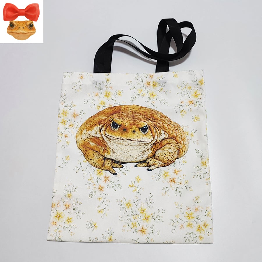 ぽっちゃりが可愛いミヤコヒキガエル、マロンちゃんの大きめトートバッグです。