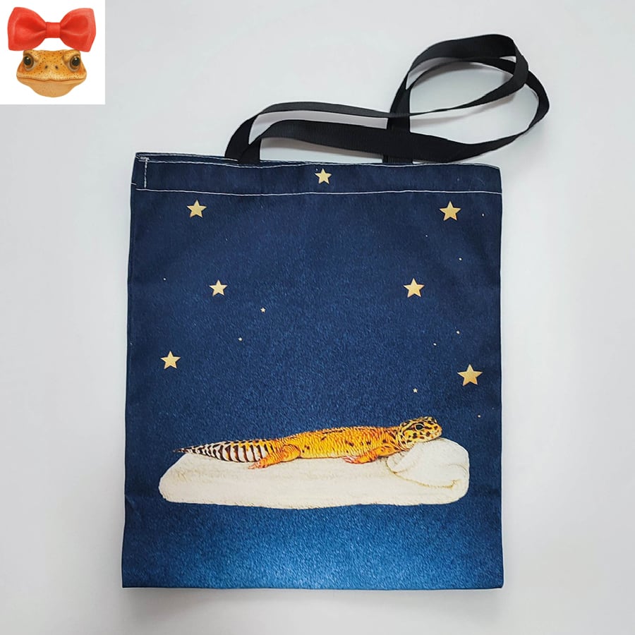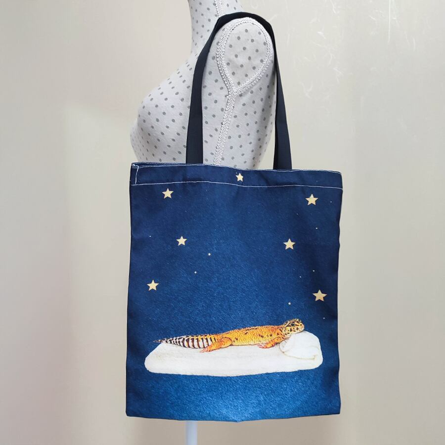 ◆寝そべりレオパの夜空トートバッグ