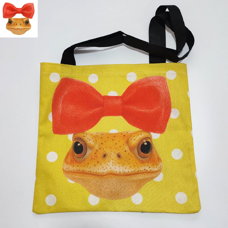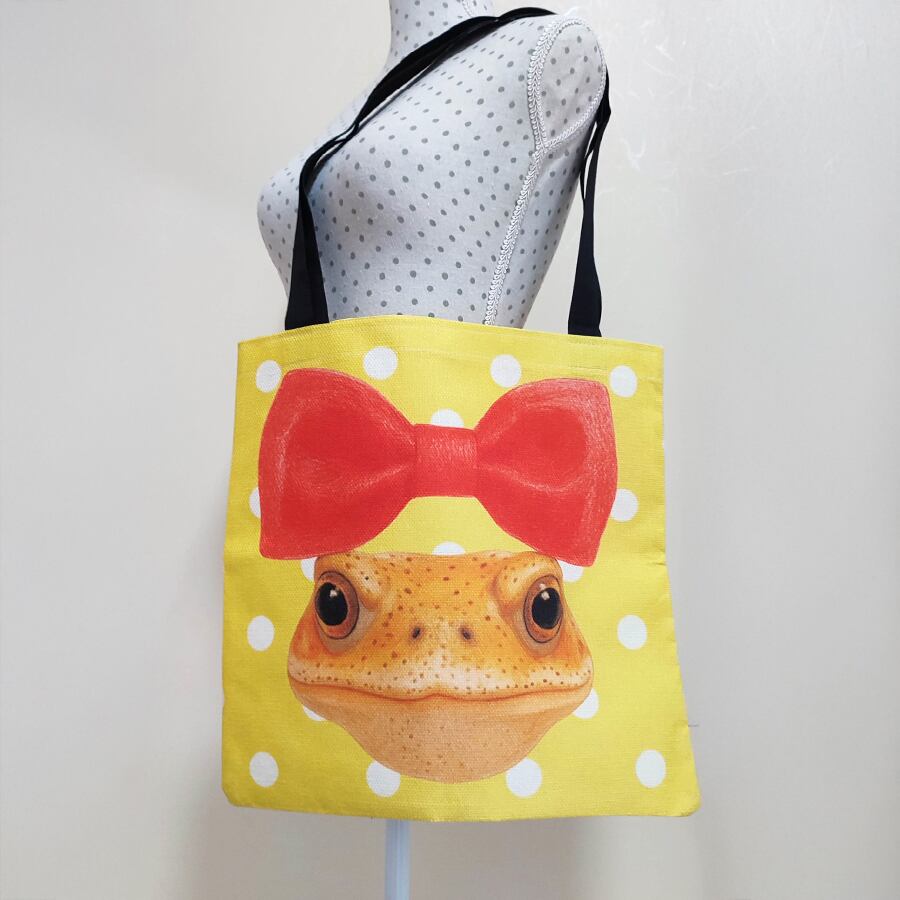 アイコンのミヤコヒキガエル、クッキーちゃんの大きめトートバッグです。