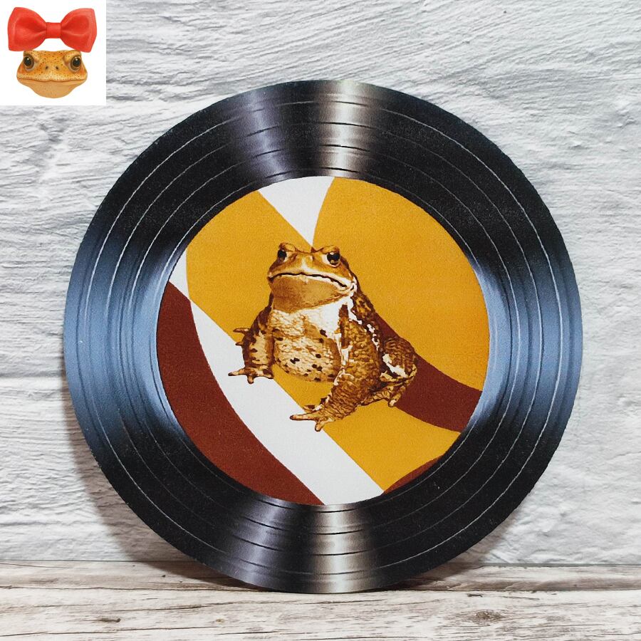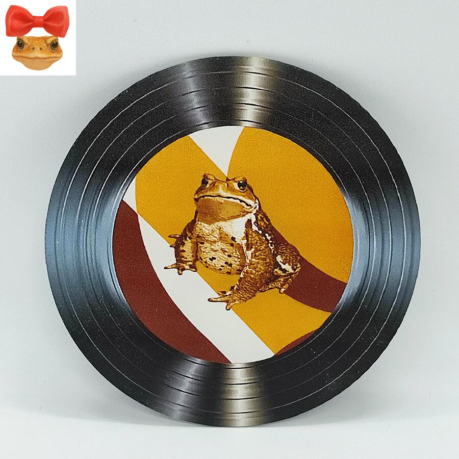 ビンテージレコードのようなヒキガエルのアクリルコースターです。