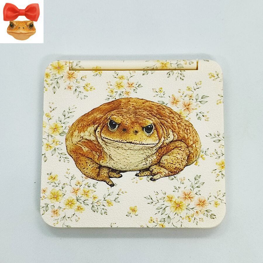 ぽっちゃりが可愛いミヤコヒキガエル、マロンちゃんの折りたたみコンパクトミラーです。