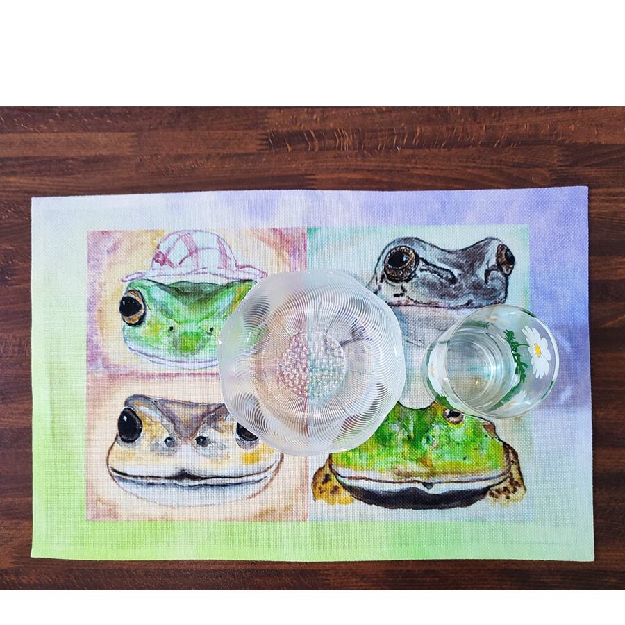 ◆水彩画・ほほえみカエル達のプレースマット
