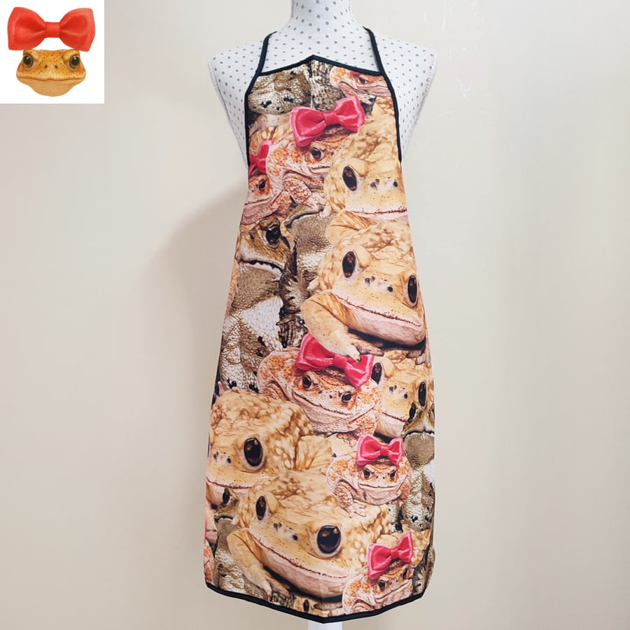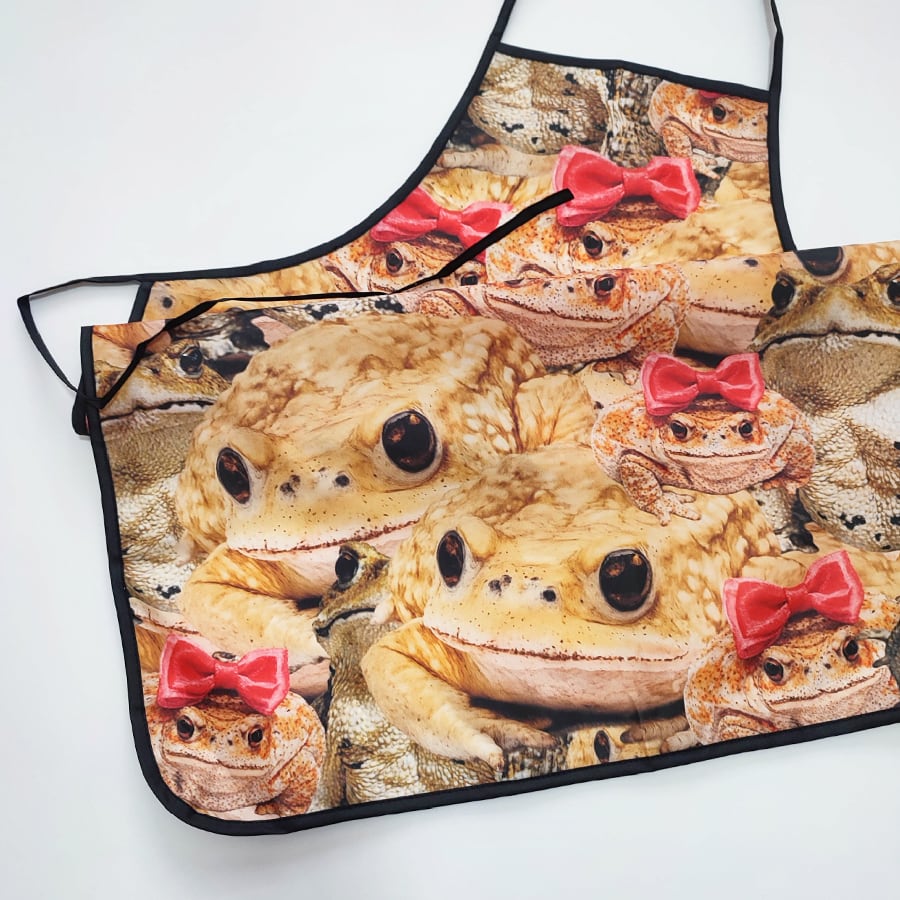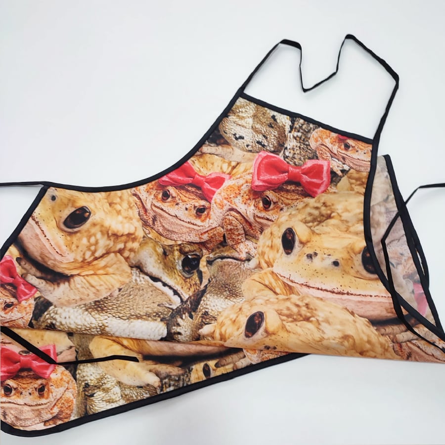 可愛いヒキガエルに埋め尽くされたエプロンです。