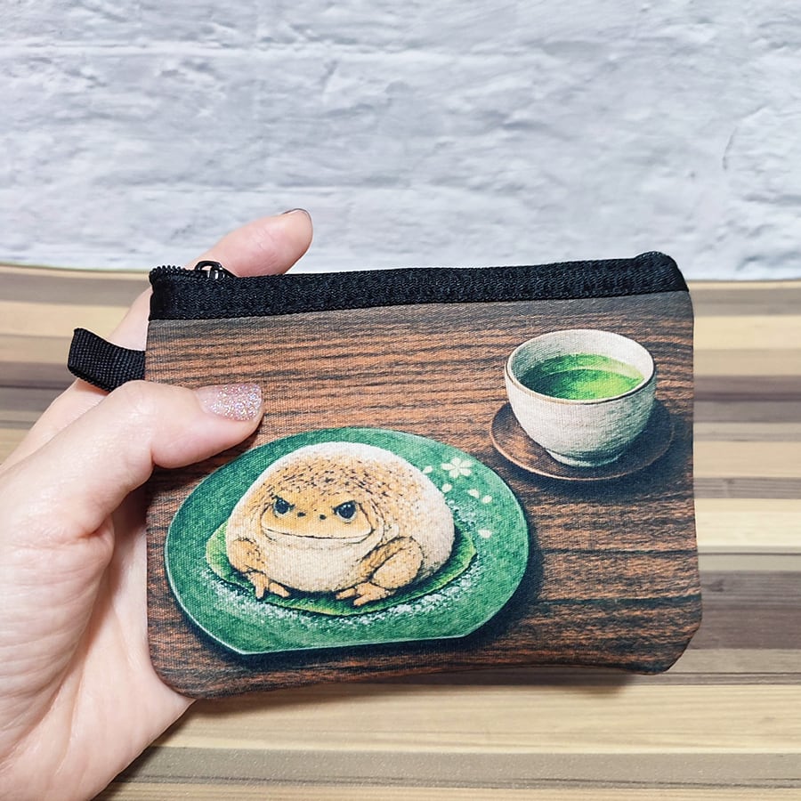 ぽっちゃりミヤコヒキガエルがおまんじゅうになった柄のコインケースです。