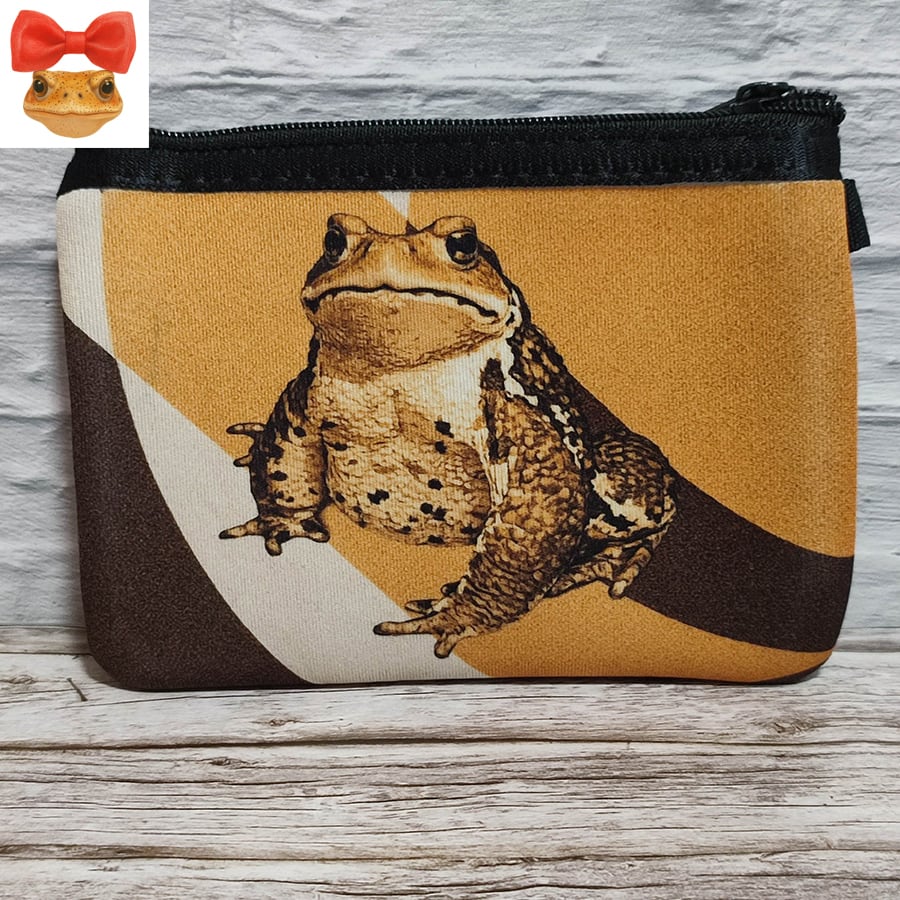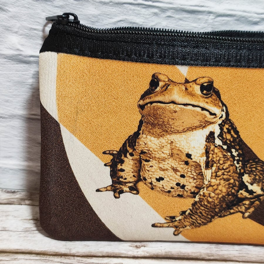モダンでビンテージ風にデザインした、ヒキガエル柄のコインケースです。